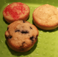 First, a vanilla cupcake recipe. I found this recipe on Pinterest. It says they are vanilla cupcakes, but I think they are more like muffins. Either way, Jordan and I both really like them! The first time I made them (the recipe makes 6) I just did plain cupcakes. We liked them so much I decided I would try to add some things into the cupcake/muffins. So, on Sunday, I made 2 with blueberries, 2 with sprinkles, and 2 with chocolate chips. (the chocolate chip ones are for Jordan- he doesn’t follow the diet). Here is the recipe: