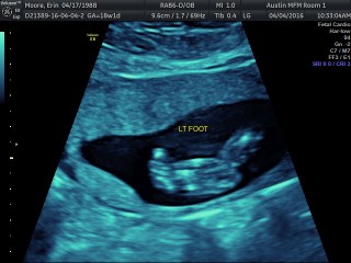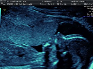 Today we had a super long appointment with Dr. Horton. We had a full anatomy scan of Jackson and ended up not having to do any blood-work, so that was a bonus! While he did not cooperate well for a good 3D face picture, he was in a great position for the echo part of the ultrasound. We got to watch his heart beating for a long time. Even Jordan and I could clearly see all 4 chambers of his heart pumping away. He is about 10″ long, 9 ounces, and has a perfectly beating heart. It was just amazing to watch. We saw 10 fingers and 10 toes, arms and legs, bladder and kidneys, and everything else. We just stared at the screen in excitement and amazement.
