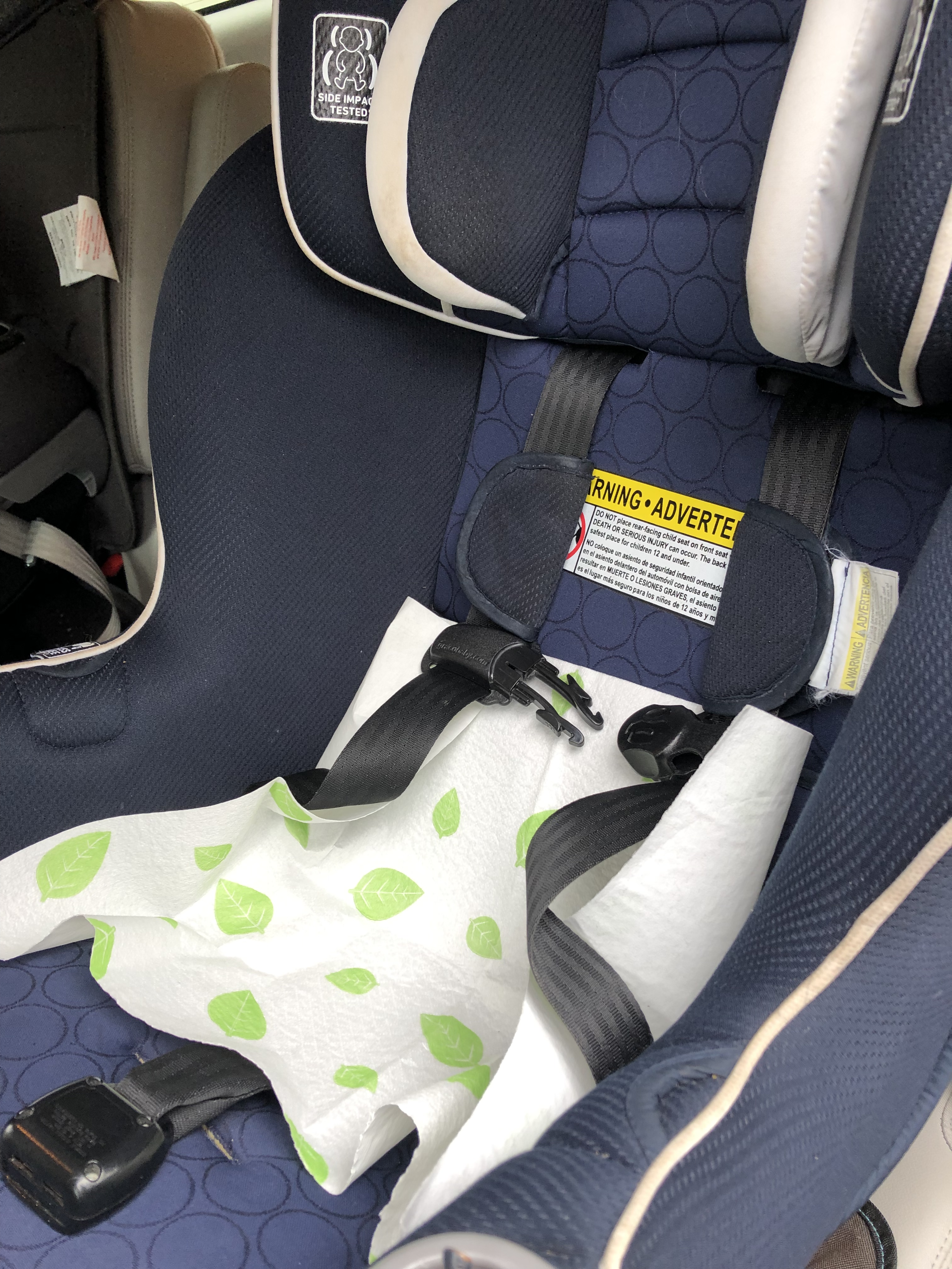 Day 1. We live in Central Texas so the first day of the roadtrip is spent just trying to get out of Texas! We left about an hour later than we had originally planned due to a work delay, but that also gave Emmy time to get a decent morning nap in before we left the house and gave me an opportunity to get the car set up before leaving. I have found that it’s best to have as many things prepared ahead of time as possible– for everything! For example, in prepping the car each morning, I go ahead and fill the snack bowls and milk and water cups. It’s less stressful to grab a cup or bowl that’s ready to go and hand it to a whiny child than to search for a cup, pour the milk while traveling and listening to the cries. One of my favorite car prep practices is to place a disposable changing pad in the carseats. This serves two purposes- protects the carseat in the event of a diaper leak and helps contain all the spillage of snacks and drinks. Both kids had diaper leaks on day 1, but the carseats were fine and did not need to be taken apart and cleaned! I have purchased this brand and they are large enough to cut in half and put half in each seat.