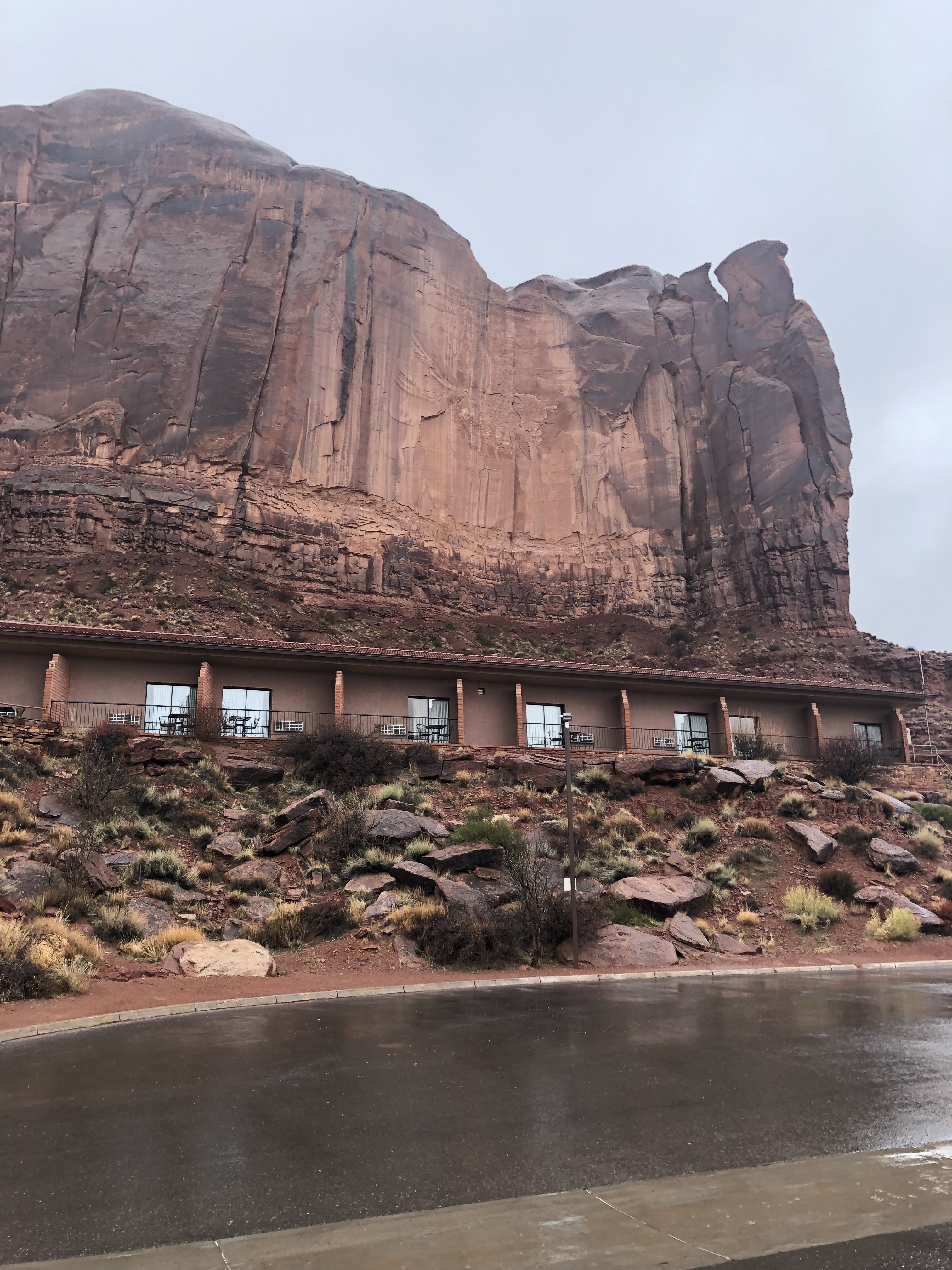 It rained all day so we really were in the car most of the day again, but not as early and not as late. We drove through Petrified Forest NP and then on to Monument Valley. It was so cloudy and rainy that by the time we got to Monument Valley, we couldn’t see any of the landscape except for what was right next to our hotel.