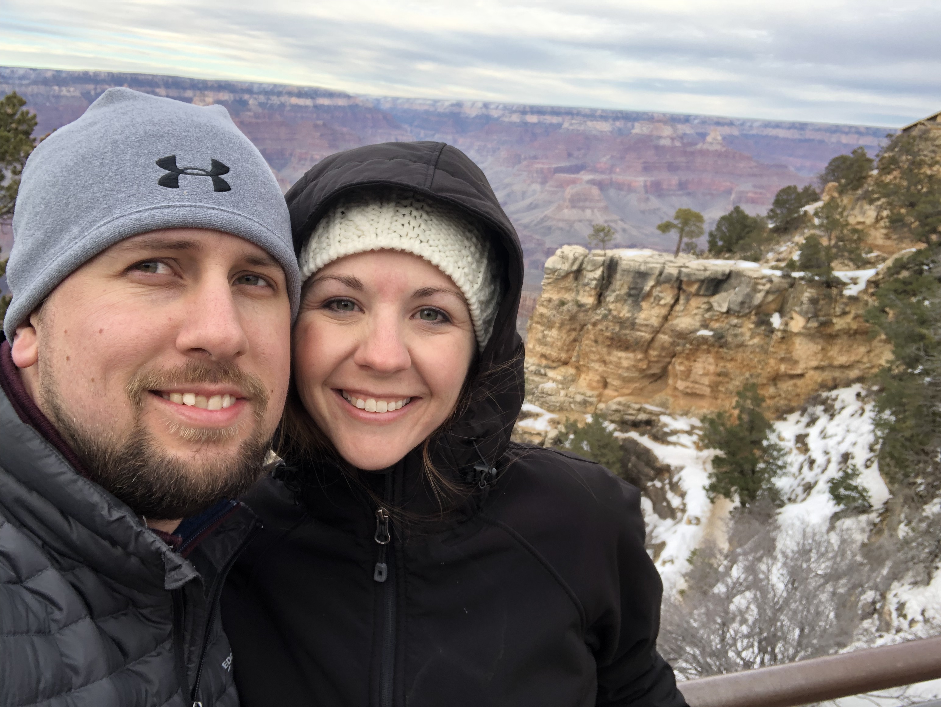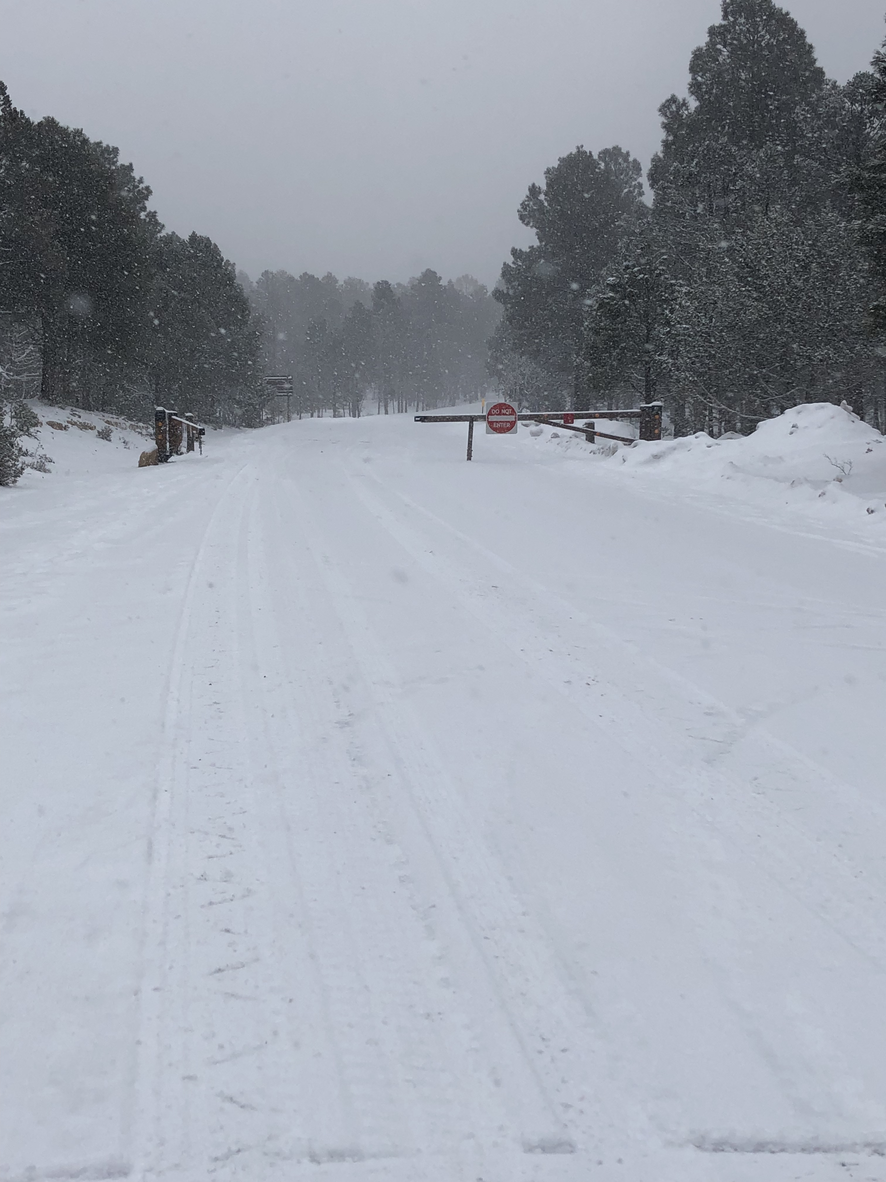 Day 7. We woke up to another snowy morning at the Grand Canyon! Jordan had left earlier for sunrise and as the kids and I got up, I got them dressed and started packing up the room. We had 1.5 hours to drive to get to worship so we needed to be dressed, packed up, fed, and checked out by 8:30. Jordan got back from sunrise around 7:45 and we rushed to get everything finished and to the food court to grab a quick breakfast. The snow was really coming down and I was nervous about the drive. As we were on our way out, we came to a Road Closed sign.